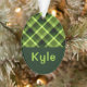 Um ornamento de árvore de Natal, acrílico, oval, monograma, com um belo padrão de xadrez diagonal, design em verde de ervilha. Crie o presente personalizado perfeito clicando no botão "personalizado" para adicionar um nome ou mensagem personalizada no campo modelo fornecido. Selecione o link "clique para personalizar mais" para alterar a fonte, o tamanho do texto e muito mais.
