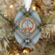 Crachá da crista de Clan Bell rodeado por uma correia e fivela sobre fundo de tartã. Texto personalizado de ambos os lados.