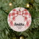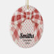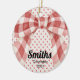 Enfeites de natal personalizados com uma ilustração encantadora de um arco de xadrez vermelha — personalize-o com seu nome para um toque especial de feriado!