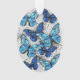 Composição vertical de borboletas de morfo realistas, azuis e brancas sobre fundo texturizado de cinzas. Borboleta azul Morpho.