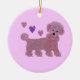 A ilustração gráfica de uma caniche cor-de-rosa e os corações projetam. Esta é uma caniche de brinquedo que adored por crianças e por famílias e faça uns enfeites de natal perfeitos para sua árvore.