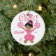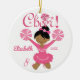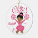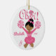 Ornamento bonito do cheerleader do afro-americano do elogio cor-de-rosa. Fácil personalizar com seus nome & data. Visite nossa loja para ver este ornamento em uma grande variedade de cores da escola & de cores do cabelo