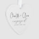 Um ornamento elegante em vidro noivado com tipografia clássica que destaca os nomes do casal, a data do noivado e a palavra envolvida na escrita moderna. Projetado em um coração branco simples, com uma fonte eterno preta, esta manutenção faz um belo presente para casais recém-engajados ou uma adição apreciada à sua própria árvore de férias.