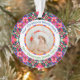 Custom Photo Merry Christmas Modern Colorful Tree Ornament. A festive, jolly and bright Christmas pattern decoration for your holiday home. Add your own two photos and words, to celebrate family memories. For budget friendly maximalist Christmas home decor presents. In traditional, warm Christmas colors of red, pink and orange, with winter green and blue. Makes a great, budget friendly gift for family.