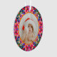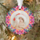 Custom Photo Merry Christmas Modern Colorful Tree Ornament. A festive, jolly and bright Christmas pattern decoration for your holiday home. Add your own two photos to celebrate family memories. For budget friendly maximalist Christmas home decor presents. In traditional, warm Christmas colors of red, pink and orange, with winter green and blue. Makes a great, budget friendly gift for her.