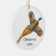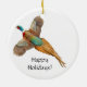O design original das belas artes de um faisão Necked do anel do vôo pelo desenhista Carolyn McFann em um ornamento customizável do feriado para Ringneck ventila.