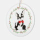 Um bonito desenho de Boston Terrier cercado por uma coroa balbuciana faz um presente maravilhoso para amantes de cachorros.