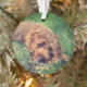 A beautiful ornament with a cute image of a Golden Doodle. The background, image and text can be personalized. Original artwork by W.B.