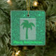 Palmeira verde brilhante e fundo enfeitam este ornamento quadrado com Mele Kalikimaka em letras negrito. Aloha!