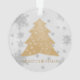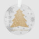 Decorre sua árvore neste feriado com um Dourado Ornamento de Árvore de Natal Festivo. Design de ornamento apresenta uma vibrante e festiva árvore de Natal enfeitada com cinzas em queda e flocos de neve brancos com um cartões de natal. Itens adicionais de presentes e feriados disponíveis com este design também.