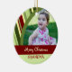 Ornamento da avó do Feliz Natal customizável com sua própria foto de família no teste padrão vermelho, verde, e amarelo elegante das listras. Um presente à moda do Natal para a avó esta época natalícia.