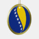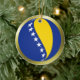 Ambos os lados deste ornamento caracterizam a bandeira de Bósnia - Herzegovina morphed em um círculo com uma borda dourada. Decoração bosniana simples para sua casa.
