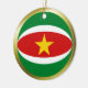 Ambos os lados deste ornamento caracterizam a bandeira de Suriname morphed em um círculo com uma borda dourada. Decoração surinamense simples para sua casa.