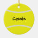 O ornamento da bola de tênis pode ser personalizado com nome da equipe, nome do jogador, ou todo o texto. Grandes presentes para jogadores de ténis ou treinador no Natal ou no algum feriado. Personalize com seu texto em ambos os lados ou o texto pode ser removido. Ano do uso redondo para trações, pendentes, ou cair do fã em espelhos de carro. Seja criativo!
