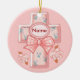 Ornamento da Cruz Cristã, cor-de-rosa, pela Ilustração ArtMuvz. Coincidindo com t-shirts cristãs personalizáveis, crianças roupa e presentes de oração. Camisa pastora cristã, presentes cor-de-rosa e roupa da igreja. Para personalizar, adicione seu nome ou adicione texto. Personalize este ornamento cruzado para torná-lo exclusivo seu ou para dar como presente personalizado