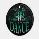 O design impressionante da dança no verde contra um fundo preto austero neste ornamento é certo atrair a atenção. Este ornamento maravilhoso é perfeito para todos os dançarinos ou professores da dança. A parte traseira está deixada vazia para que você adicione sua própria mensagem ao receptor, se você gosta. Use simplesmente "personalizam-no!" abotoe para alcançar o editor em linha do produto para personalizar este presente. ©Studio Miyabi www.Gifts4Dancers.com