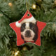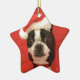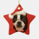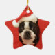 Que papai noel bonito de uma Boston que olha fixamente em você de sua árvore de Natal! Os amantes do cão do terrier de Boston amarão este ornamento brilhante do começo!