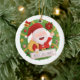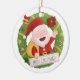 Um ornamento com um tema de Natal! Apresentando um Papai Noel bonitinho e alegre que está carregando um cheio de presentes! À sua volta está uma coroa de Natal decorada com clássicos de Natal como estrelas, sinos e fita, ornamentos, flor de Natal, concha e cana doce! Personalize sua saudação de Natal no espaço previsto!