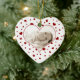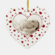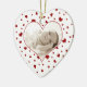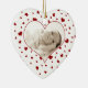 Lembrança do ornamento do dia dos namorados do bebê da foto ?a com o teste padrão vermelho e branco clássico dos corações, customizável com sua foto do nome e do bebê. A lembrança perfeita do primeiro dia dos namorados do bebê.