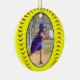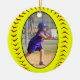 Personalize este ornamento do softball do fastpitch com as fotos em ambos os lados para jogadores, equipes, ou treinador. Use como uma decoração da árvore de Natal, etiqueta ou ornamentação do presente, pendente, tração do fã ou do zipper ou mesmo um encanto da garrafa.