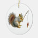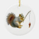 Um esquilo com um peixe do ouro em seu pólo de pesca minúsculo. Ornamento bonito para um amante ou um pescador do esquilo.
