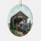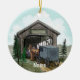 Amish cobriu o ornamento da ponte, t-shirts e presentes por ArtMuvz Illustration. Personalize o cavalo Amish correspondente e o buggy entrando na t-shirt da ponte coberta, presentes, roupa.