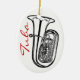 Ornamento oval com um desenho de uma tuba no preto e da "tuba" no roteiro vermelho elegante.