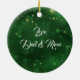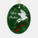 Personalize e clareie sua árvore de Natal com este lindo Enfeites de natal de "Um dos Tipos" de Portas Brancas! Ela apresenta uma pomba branca de Natal voando em um fundo verde entre as estrelas de Natal Douradas e o Carregando de oliva com fitas vermelhas e verdes fluindo, desejando a todos um ..."Feliz Natal! Esta é uma Design de Arte Original do Artista Kerry Miller."