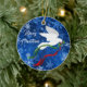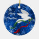 Personalize e clareie sua árvore de Natal com este lindo Enfeites de natal de "Um dos Tipos" de Portas Brancas! Apresenta uma Porta Branca de Natal Voando Entre Estrelas e Flocos de Neve Carregando um Branch de Oliva com Fitas Vermelhas e Verde Flutuantes... Desejo a todos um ..."Feliz Natal! Esta é uma Design de Arte Original do Artista Kerry Miller."