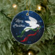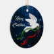 Personalize e clareie sua árvore de Natal com este lindo Enfeites de natal de "Um dos Tipos" de Portas Brancas! Ela apresenta uma pomba branca de Natal voando entre estrelas brancas de Natal Carregando um ramo de oliveira com fitas vermelhas e verdes fluindo, desejando a todos um ..."Feliz Natal! Esta é uma Design de Arte Original do Artista Kerry Miller."