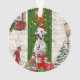 Cachorro Dalmaciano sentado do lado de fora de casa decorada com coroa de Natal, árvore de Natal é uma ideia perfeita de presente de Natal para amantes de cachorros.