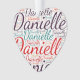 Danielle. Mostre e vista este famoso e belo nome feminino desenhado como uma nuvem de palavras colorida feita de tipografia cursiva horizontal e vertical de letras de mão em diferentes tamanhos e cores frescas adoráveis. Vista seu nome americano positivo ou mostre o mundo que você ama ou ama. Merch com este trabalho de arte de texto suave é um presente de excelente, não apenas no mês de história das mulheres, ou presente de aniversário.