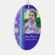 O Feliz Natal avó e vovô ornament customizável com sua própria foto de família no azul moderno, no roxo e no branco com flocos de neve e teste padrão festivos dos redemoinhos. Um presente à moda do Natal para avós esta época natalícia.