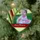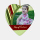 Feliz Natal avó & ornamento do vovô customizável com sua própria foto de família no teste padrão vermelho, verde, e amarelo elegante das listras. Um presente à moda do Natal para avós esta época natalícia.