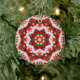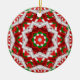 Um caleidoscópio vermelho, branco e verde da arte do fractal decora este ornamento da árvore de Natal.