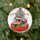 Ornamento das patas do papai noel de Puggle com os 3 filhotes de cachorro adoráveis de Puggle que vestem chapéus do papai noel.