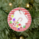 Este Ornamento de Ameixas de Açúcar apresenta Canas de Férias com uma fronteira de gingham vermelha. Faz um excelente estourando!
