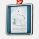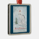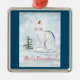 Um gato branco bobo com um pássaro vermelho na cabeça lhe desejo um Feliz Natal neste lindo ornamento de árvore.