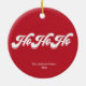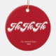 O ornamento da árvore de Ho Ho de Natal Vermelho com texto branco e modificável - você pode mudar o nome da família e o ano.