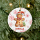 Celebre a temporada com este adorável ornamento personalizado de pão de gengibre! Apresentando um gengibre alegre num chapéu de Papai Noel com flocos de neve cor-de-rosa e uma árvore esfestiva e verde, esta manutenção cerâmica inclui o nome do seu filho impresso ousadamente abaixo. Uma adição perfeita a qualquer árvore de Natal, este ornamento é ideal para crianças, netos, ou o primeiro Natal do bebê. Também faz uma doce etiqueta de presente, guardião, ou tesouro de férias colecionável que eles vão amar ano após ano.