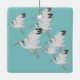 Ibis brancos em voo em fundo aquamarino. Imagem esquemática das aves costeiras.