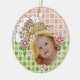 Você pode adicionar a sua escolha de texto e a foto do seu bebê a este personalizável ornamento de bebê com um ursinho de pelúcia dormindo e flores cor-de-rosa!