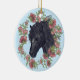 Ornamento de Bellflower Black Horse, t-shirts de cavalos e presentes por ArtMuvz Illustration. Linda camiseta do Cavalo Negro, roupa de cavalo rodeio e presentes de natal para Cowboy e Cowgirl Western roupa. Para personalizar, adicione seu nome ou adicione texto. Personalize este ornamento de cavalo para torná-lo exclusivo seu ou para dar como presente personalizado