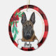 Ornamento do Malinios belga com fundo de búfalo vermelho e pátria e arco de Natal - Arte foi pintada à mão por mim e disponibilizada como este adorável ornamento! Adicione qualquer texto (sugerido: "I ❤️ my mal" ou seu nome de docinho) visite www.curella.net para obter um retrato personalizado, adesivos e muito mais.