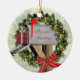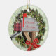 Linda caixa de correio de férias da Season's Saudações e ornamento cerâmico por terra! Este adorável ornamento cerâmico de arte digital de dois lados apresenta uma caixa de correio decorada com um adorável arco vermelho com ouro, e uma grande coroa de férias ao seu redor. A caixa de correio também tem um presente bonito, vermelho e dourado, exibido na caixa de correio aberta. Arte digital por Designs XG NYC. Um presente de excelente para amigos, família ou seu correio! Para mais cartões de natal profissionais, profissionais e presentes, visite nosso compro!