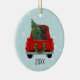 Ornamento de Caminhão de Natal Vermelho Cachorro Negro