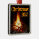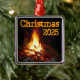 Foto de uma fogueira feita de paus, cercada por pedras e queimando contra o céu escuro, com texto personalizável, "Natal 2012."