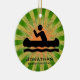 Canoagem Personalizada do Ornamento Natal 20XX. Uma canoa contra um fundo verde e laranja de explosão. Todo texto personalizável, frente e verso!