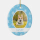 Celebre seu cachorro ou um novo filhote com este ornamento em flocos de neve. Este ornamento personalizado de cachorro apresenta flocos brancos de neve em um fundo azul e pode ser personalizado com o nome do seu cachorro, o ano e duas fotos. Pode também ser utilizado em gatos, cobaias ou até em seres humanos ;)