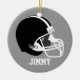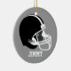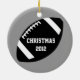 Forno cerâmico redondo com gráficos de um capacete de futebol branco e preto, sobre fundo de cinza e texto branco. As costas são cinzas com uma bola de futebol negra com texto branco lendo o Natal de 2012. Todo texto é personalizável para que você possa personalizar para si mesmo ou como uma ideia de presente de excelente para aquele jogador de futebol especial na sua lista. Nice tem um cabide de porta ou um puxador de ventilador.